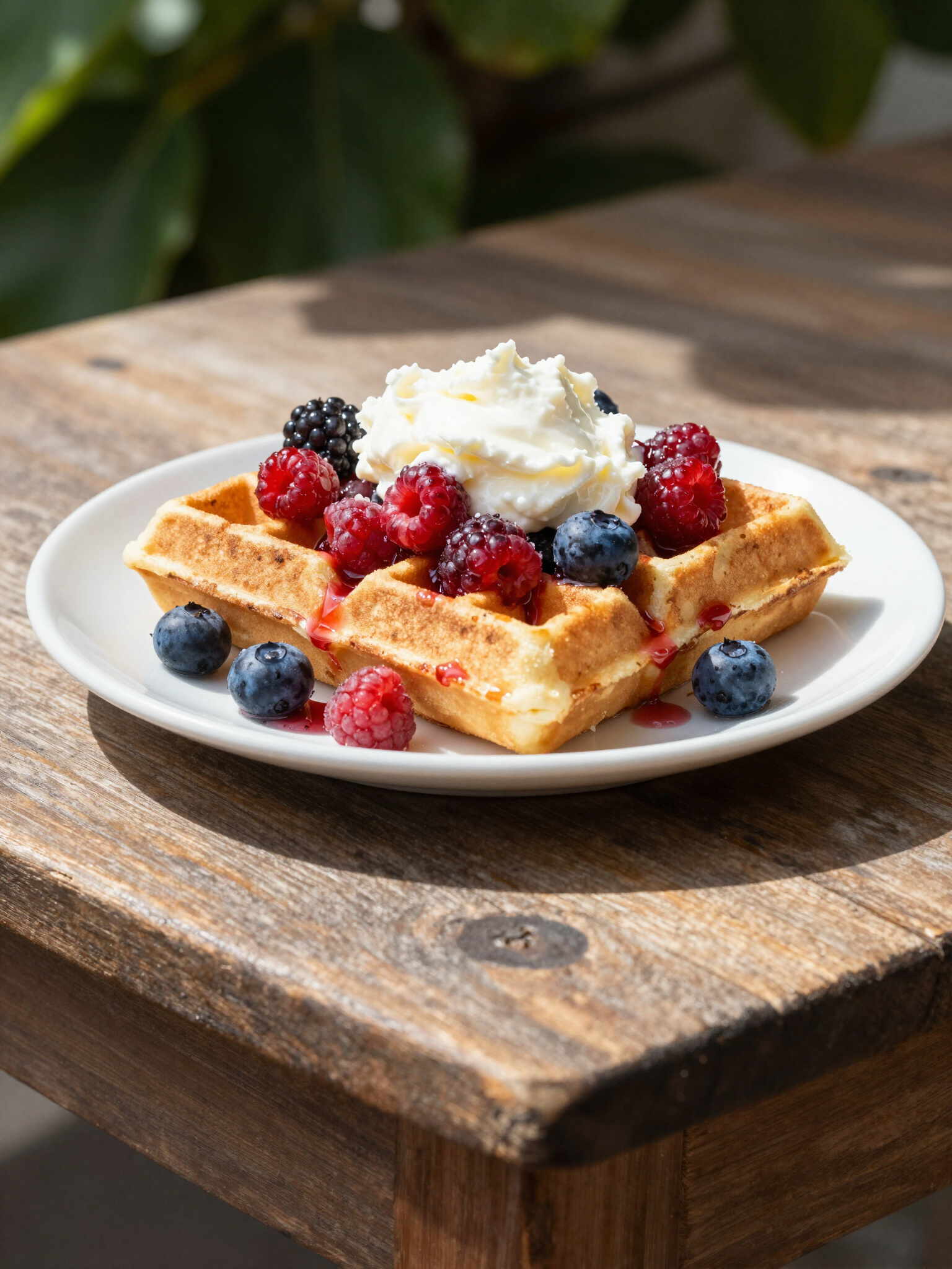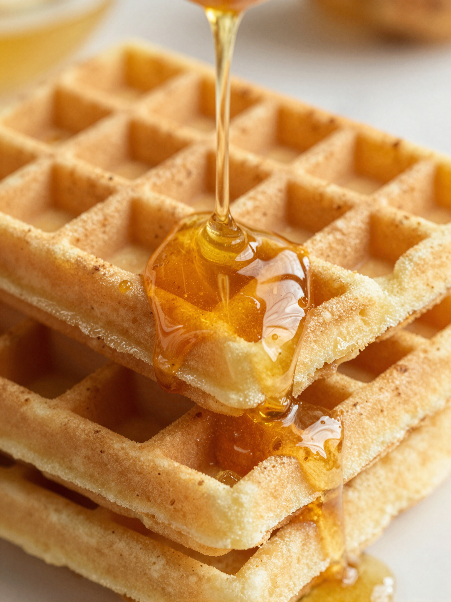 Classic light waffle drizzled with artisanal honey and topped with fresh seasonal berries.